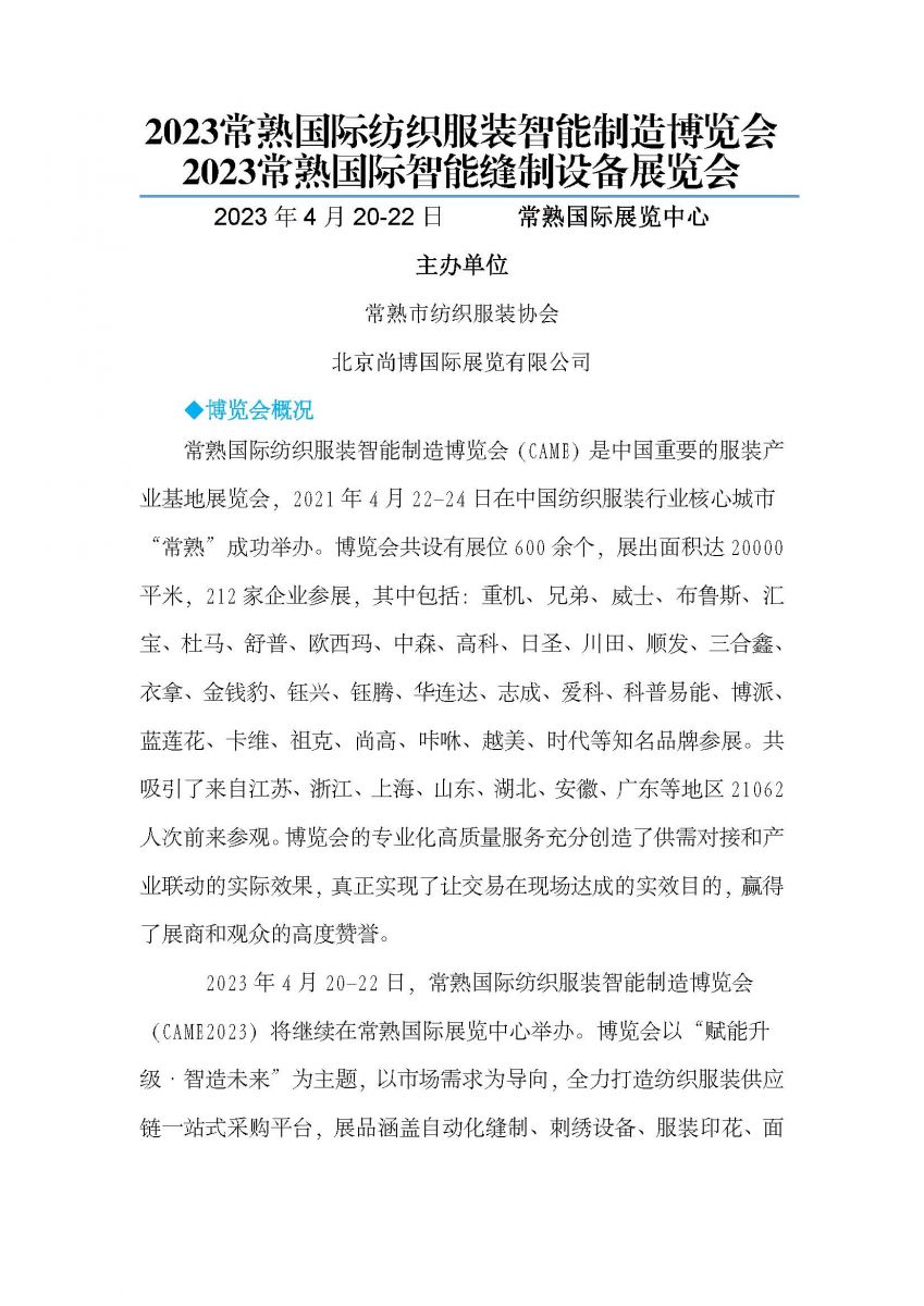 > 常熟國際紡織服裝智能制造博覽會(CAME)