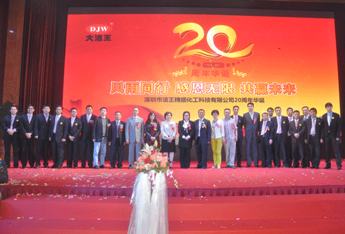 4月16日,深圳市潔王精細化工科技有限公司舉行了慶祝20周年華誕的盛典活動。中國縫制機械協(xié)會理事長何燁、廣東省縫制設備商會會長梁佛祥、安徽省天長市市長劉榮祥、廣東省縫制設備商會副會長李基、麥德添、黎偉彥、蘇國韜、馬偉全、深圳縫制機械行業(yè)協(xié)會會長楊賽國、副會長陳添德、秘書長朱媧等嘉賓以及潔王公司董事長韓堅定、總裁鄭惜娟、潔王公司的合作伙伴以及潔王公司的員工共計四百多人出席了本次活動。