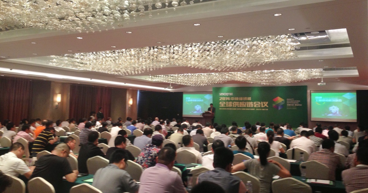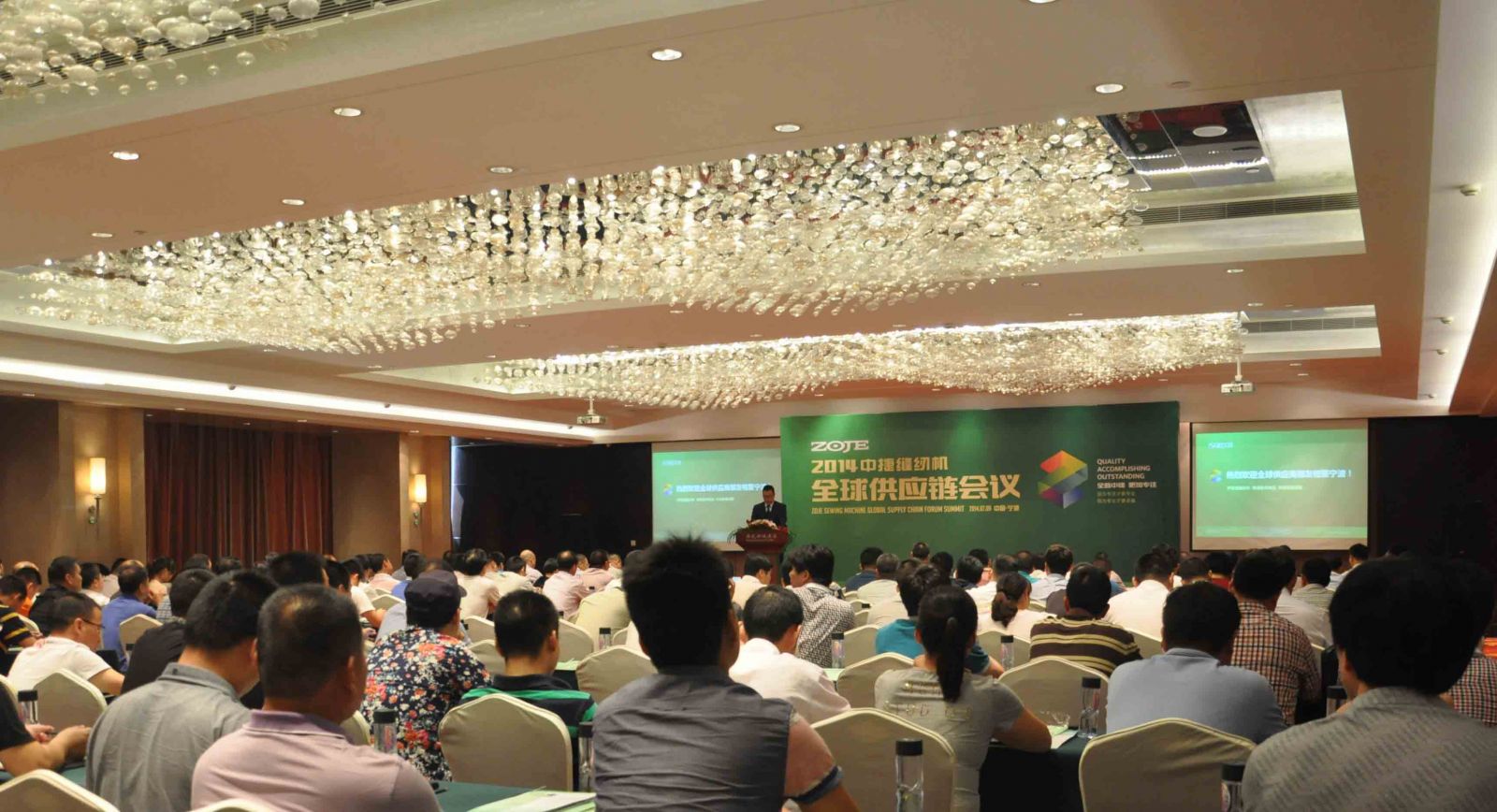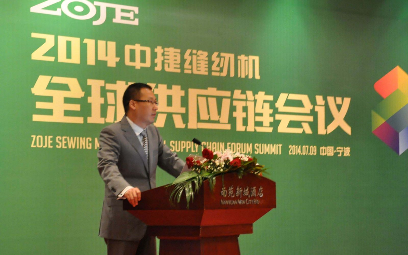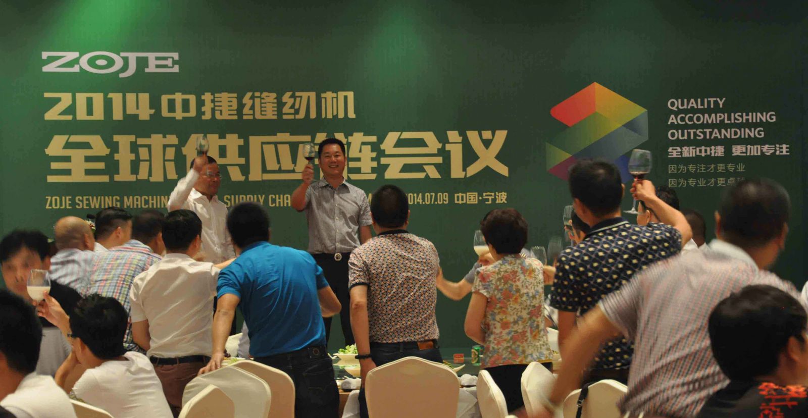 2014年7月9日,工業縫紉機行業領跑者——中捷縫紉機,在公司成立二十周年之際,在寧波南苑新城酒店召開了頗具規模的“2014中捷縫紉機全球供應鏈會議”。本次會議以“全新中捷 更加專注”為主題,云集了中捷縫紉科技有限公司董事長李瑞元先生、總經理徐仁舜先生、常務副總汪明健先生等高層領導以及來自全球各地170多位中捷供應商代表們。