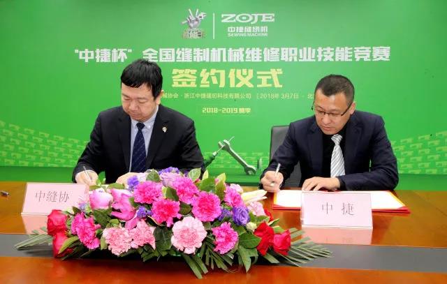 3月7日,中國縫制機(jī)械協(xié)會與浙江中捷縫紉科技有限公司就“全國縫制機(jī)械維修職業(yè)技能競賽(2018-2019賽季)”賽事合作達(dá)成一致,并正式簽署了合作協(xié)議,中捷公司將繼續(xù)獨家冠名贊助“全國縫制機(jī)械維修職業(yè)技能競賽(2018-2019賽季)”賽事。中國縫制機(jī)械協(xié)會副理事長楊曉京、浙江中捷縫紉科技有限公司總經(jīng)理徐仁舜分別代表合作雙方簽署了協(xié)議。簽約儀式由協(xié)會秘書長陳戟主持,協(xié)會副理事長林建龍出席儀式。