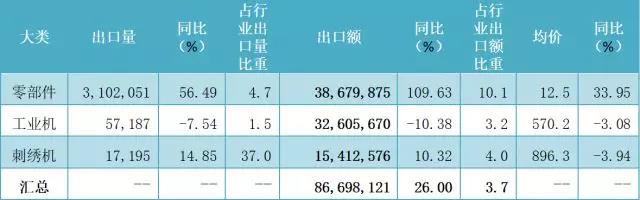 注:以上數(shù)據(jù)含家用縫紉機產(chǎn)品