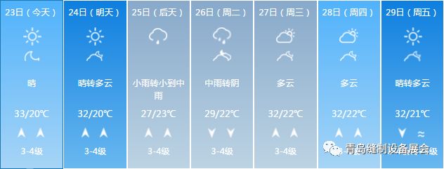 從現在(6月25日11:00,青島·即墨)的天氣預報來看,28-30日開展期間艷陽高照大晴天,展前3天陰雨天氣讓即墨地區溫度略有降低,正是逛展好時間,青島海濱城市,注意早晚氣溫變化。