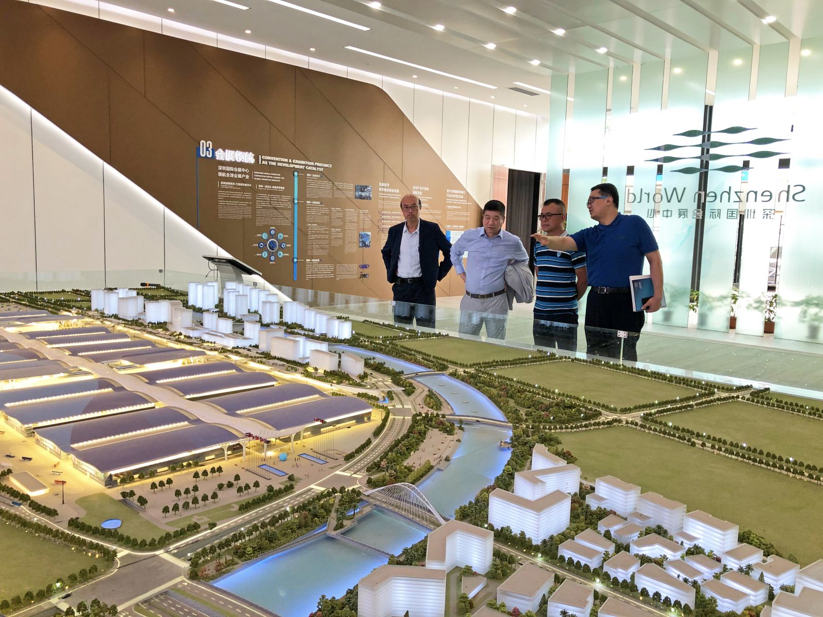 6月5日,廣東省縫制設備商會主席梁佛祥、會長麥德添、常務副會長邵力世,香港訊通展覽公司董事長梁天富、項目總監周一帆來到深圳國際會展中心(新館)考察。