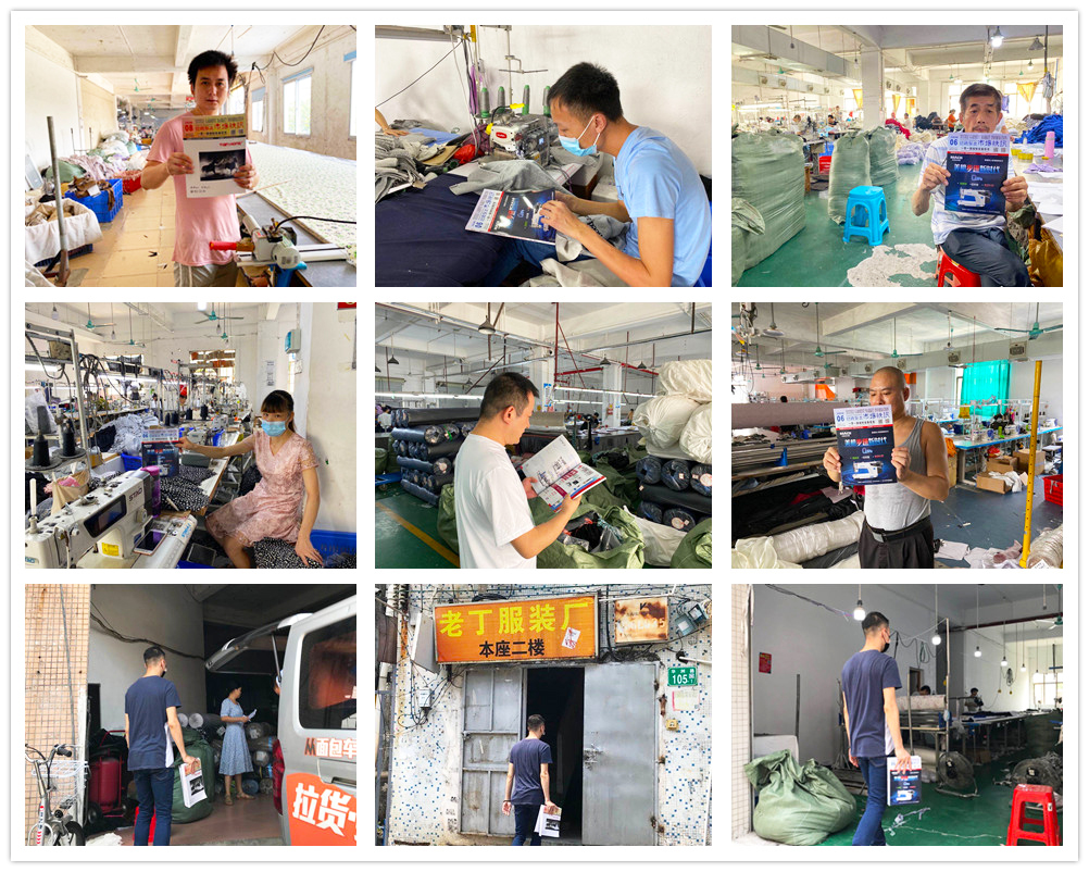 記者向這里的各個廠家派發了行業期刊《紡織制衣市場快訊》,并與大家交流服裝行業復工復產情況。據服裝工人們的介紹,自疫情以來,外貿訂單紛紛取消或延遲。不過現在國內的訂單已經逐漸恢復,特別是網購訂單。以前是以淘寶訂單為主打,現在拼多多的訂單也逐漸多了起來。