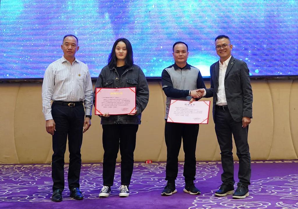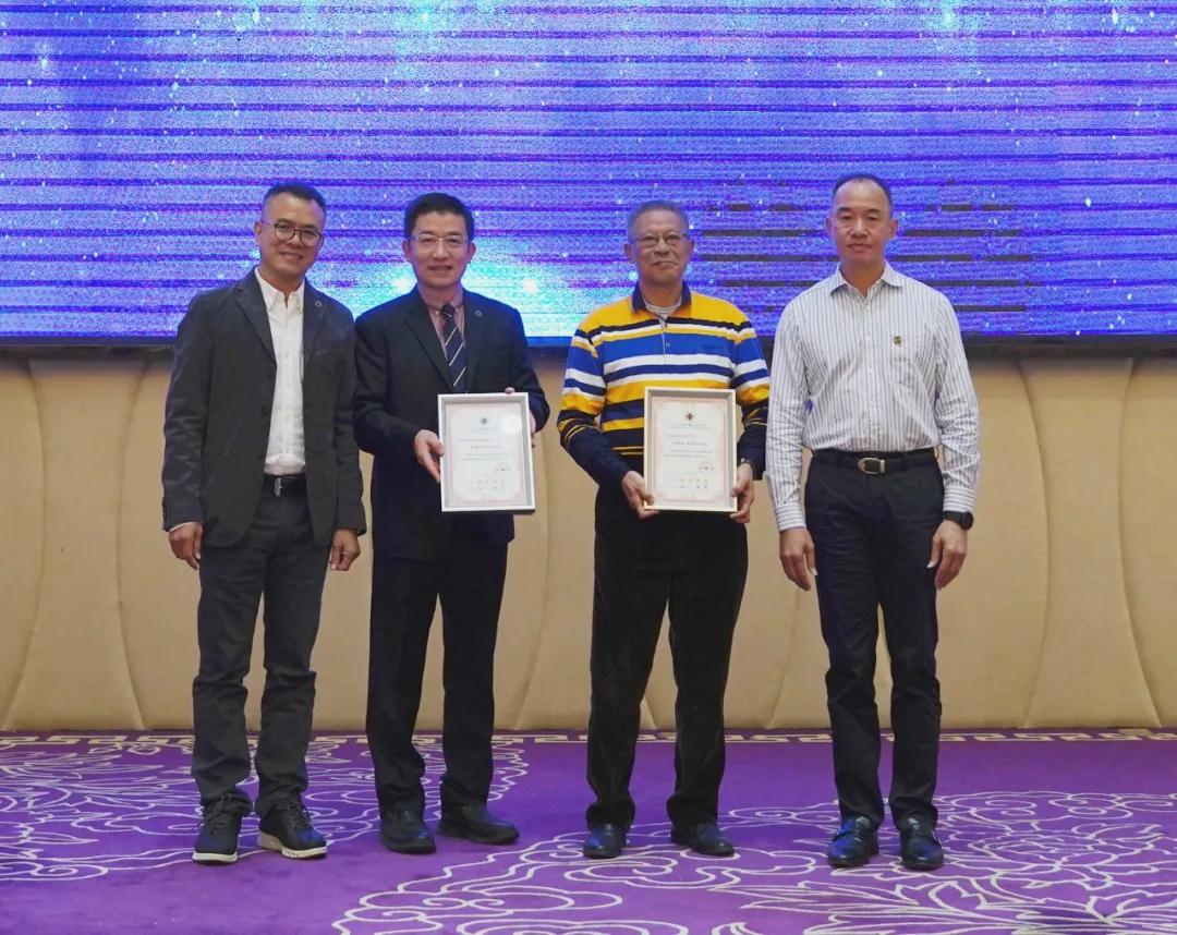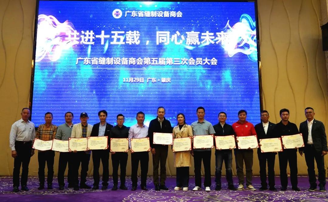 向廣州市志誠縫紉機有限公司蘇國韜先生、深圳安達縫紉機械制造有限公司李基先生(邵力世常務副會長代表接牌)頒發廣東省縫制設備商會榮譽副會長證書。