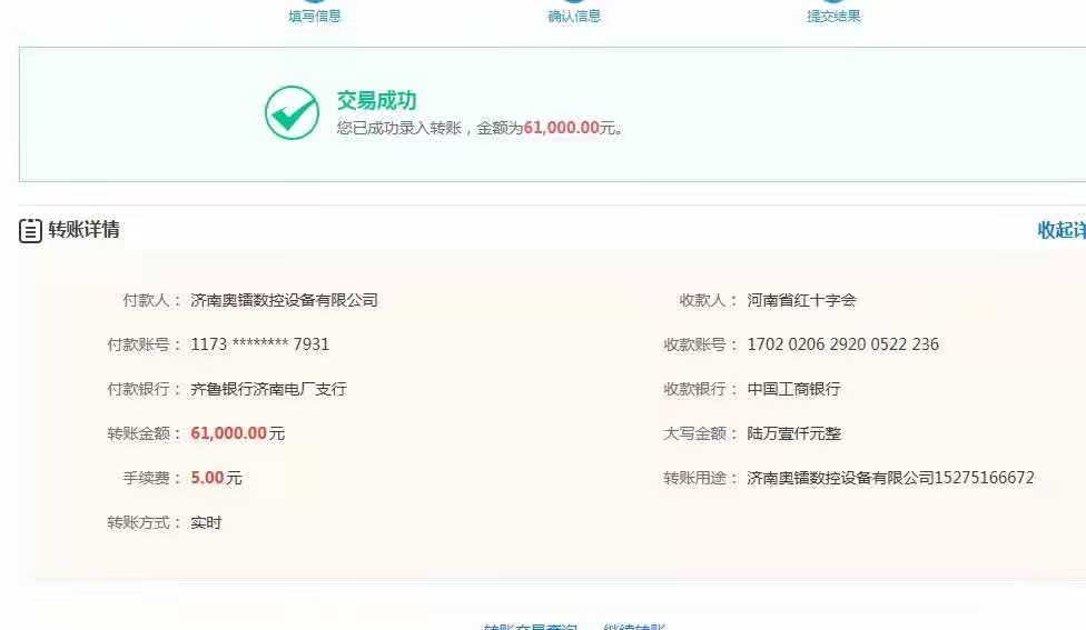 商會會員單位奧鐳數控設備有限公司通過河南省紅十字會向河南災區捐款61000元。奧鐳數控公司的工作人員表示,這是公司所有人員的一份愛心,盡一份綿薄之力,愿河南早日渡過難關,恢復重建!