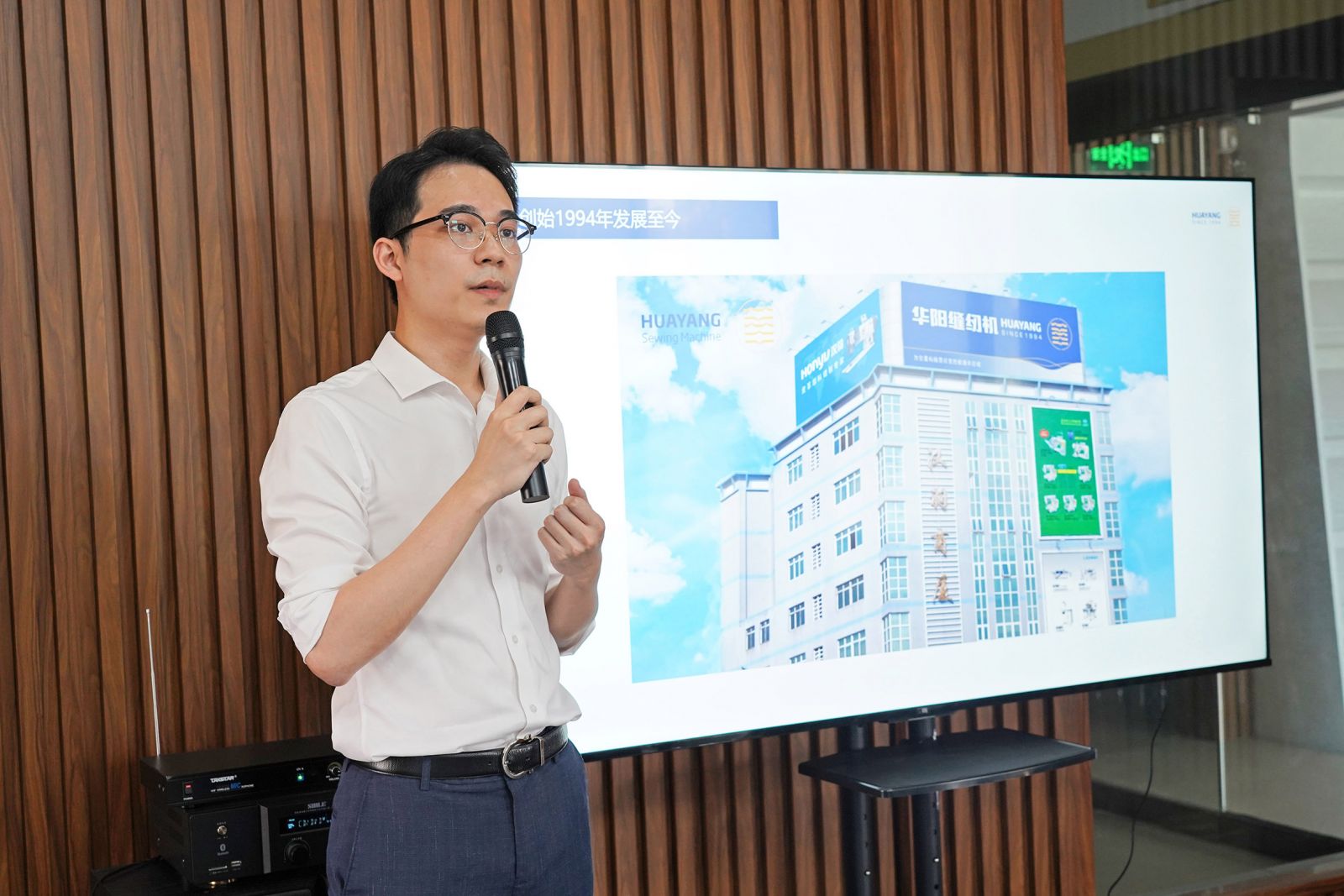 華陽(yáng)公司董事長(zhǎng)助理李家輝詳細(xì)介紹了公司概況及發(fā)展愿景。華陽(yáng)旗下目前擁有華陽(yáng)縫紉機(jī)公司、華辰機(jī)電公司、漢羽科技公司等三家分公司。李家輝分別介紹這三家分公司不同的定位和使命,并詳細(xì)介紹了華陽(yáng)在經(jīng)營(yíng)管理、人員培訓(xùn)、營(yíng)銷(xiāo)服務(wù)、主營(yíng)產(chǎn)品特點(diǎn)等各方面的內(nèi)容。