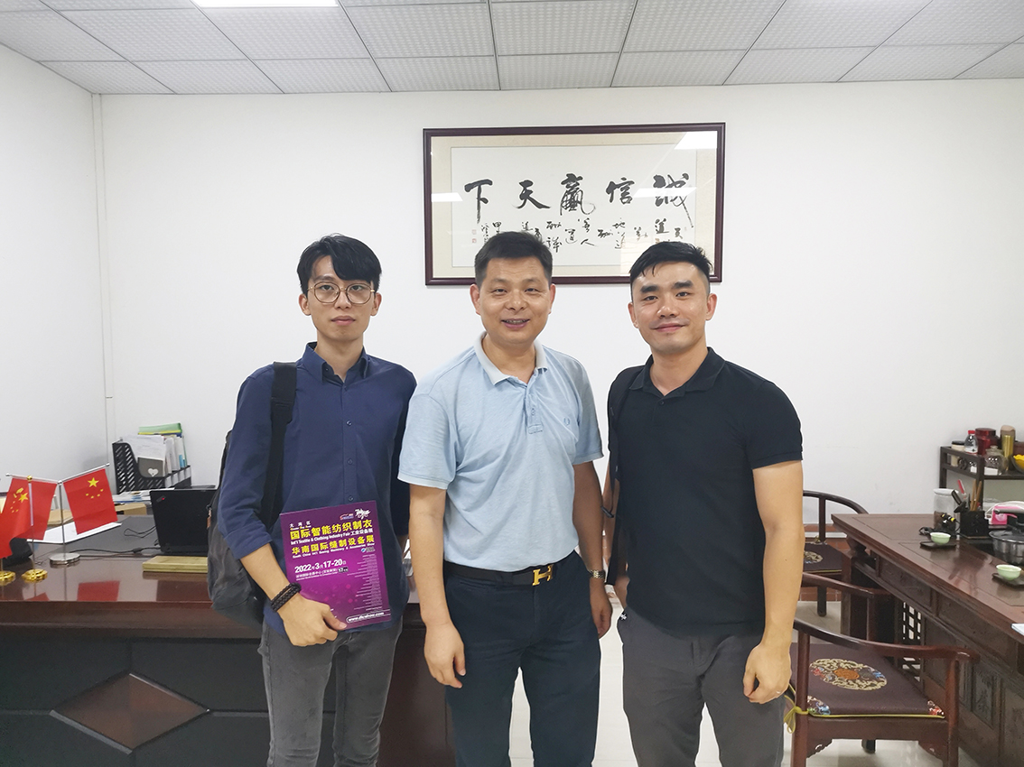 商會一行還走訪了中山市沃爾克縫制設備有限公司,梁主任向沃爾克總經理麥德勝了解近期企業的經營概況,并向麥總介紹了商會近期工作及2022年深圳大灣區暨華南展SCISMA展會安排。