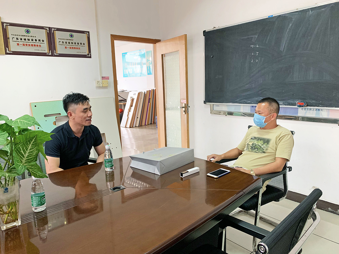 8月27日,在走訪江門地區期間,商會一行來到篷江區偉仕機械廠,偉仕總經理韋厚醒介紹了該公司主營業務情況。偉仕廠以生產充絨機為主,以往直接對廠家銷售,現在希望通過多種渠道擴大銷售量。為此,韋總向商會了解上海CISMA展會、2022深圳大灣區暨華南展SCISMA等行業展會信息資訊,希望通過專業展會渠道向行業做更深層次的推廣。