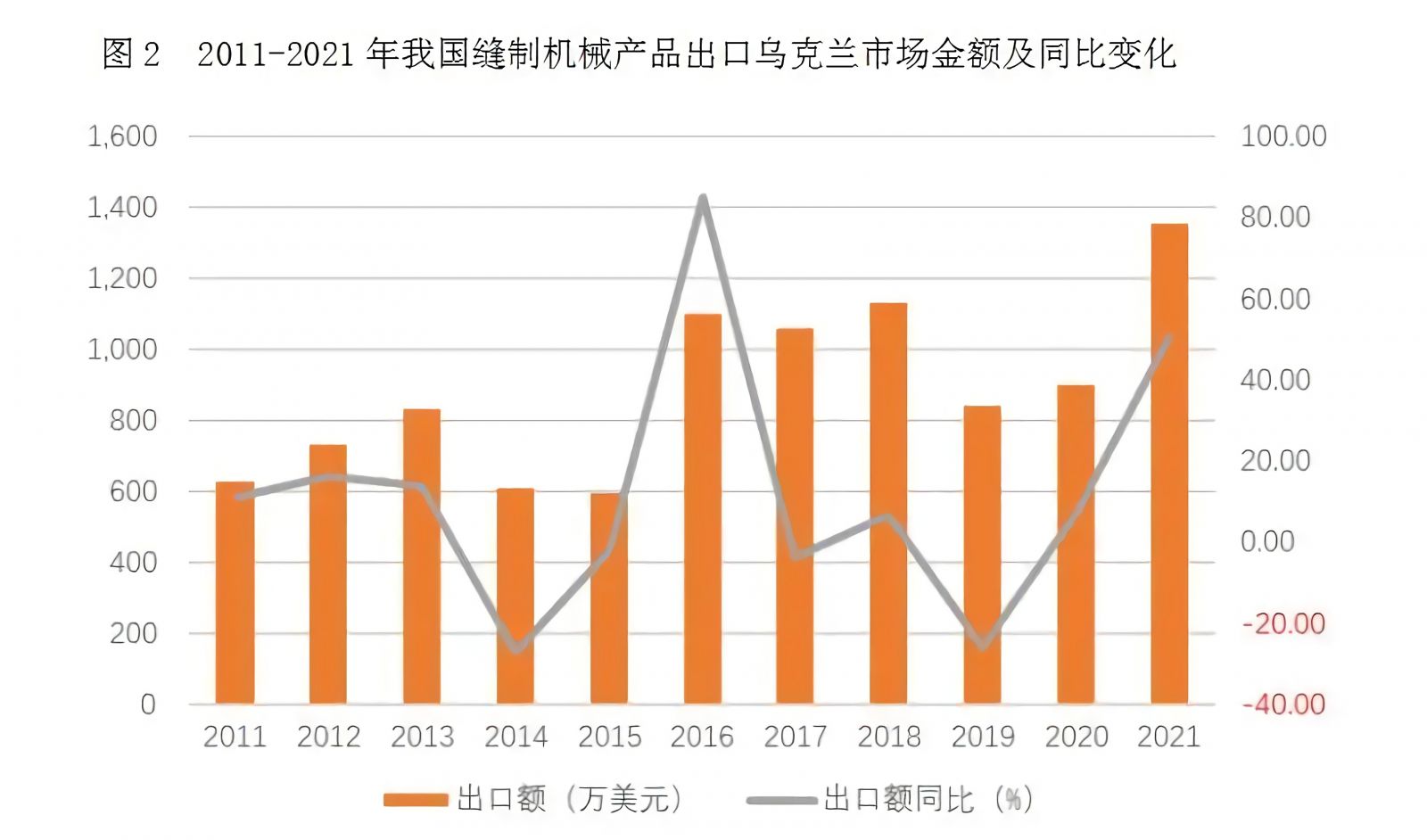 烏克蘭方面,受戰火影響,其國家重建、經濟恢復、政局動蕩等必將經歷漫長的時間,可以預期,我國縫制機械行業對烏克蘭的出口從艱難恢復到逐步回歸正常將要經歷兩年甚至數年時間。