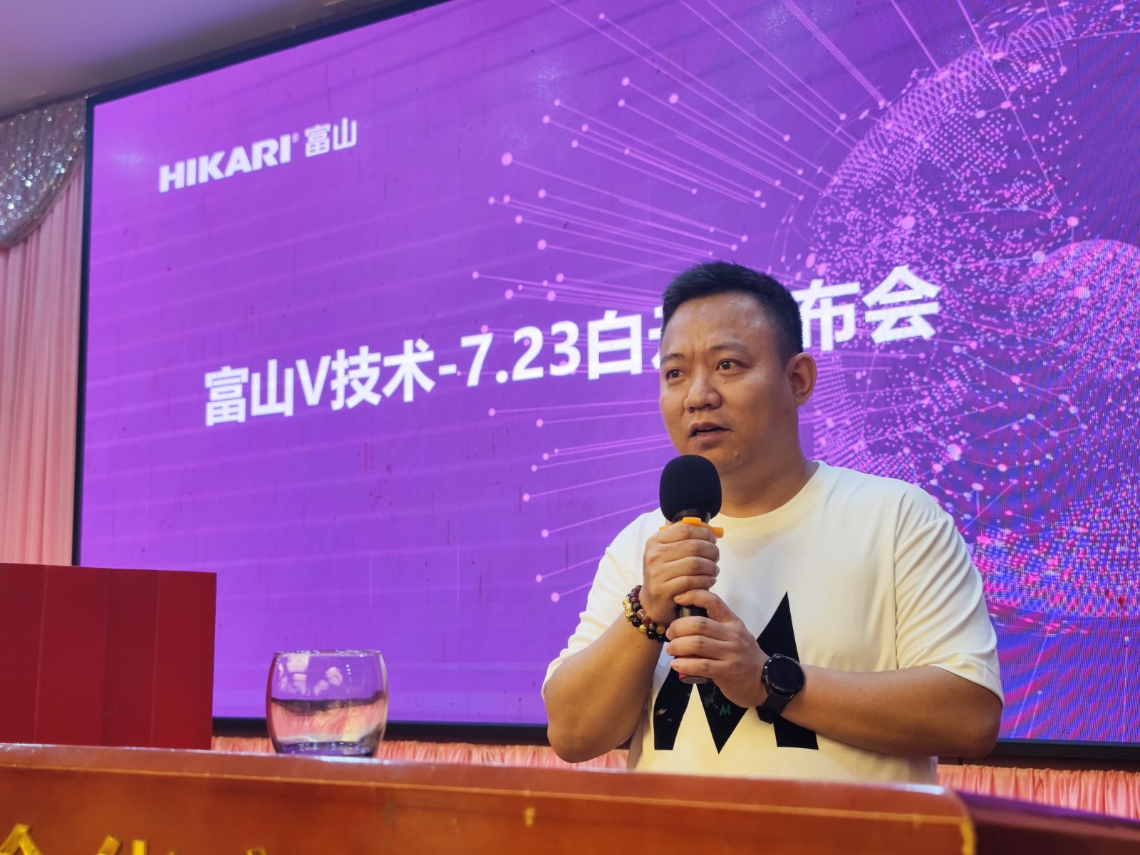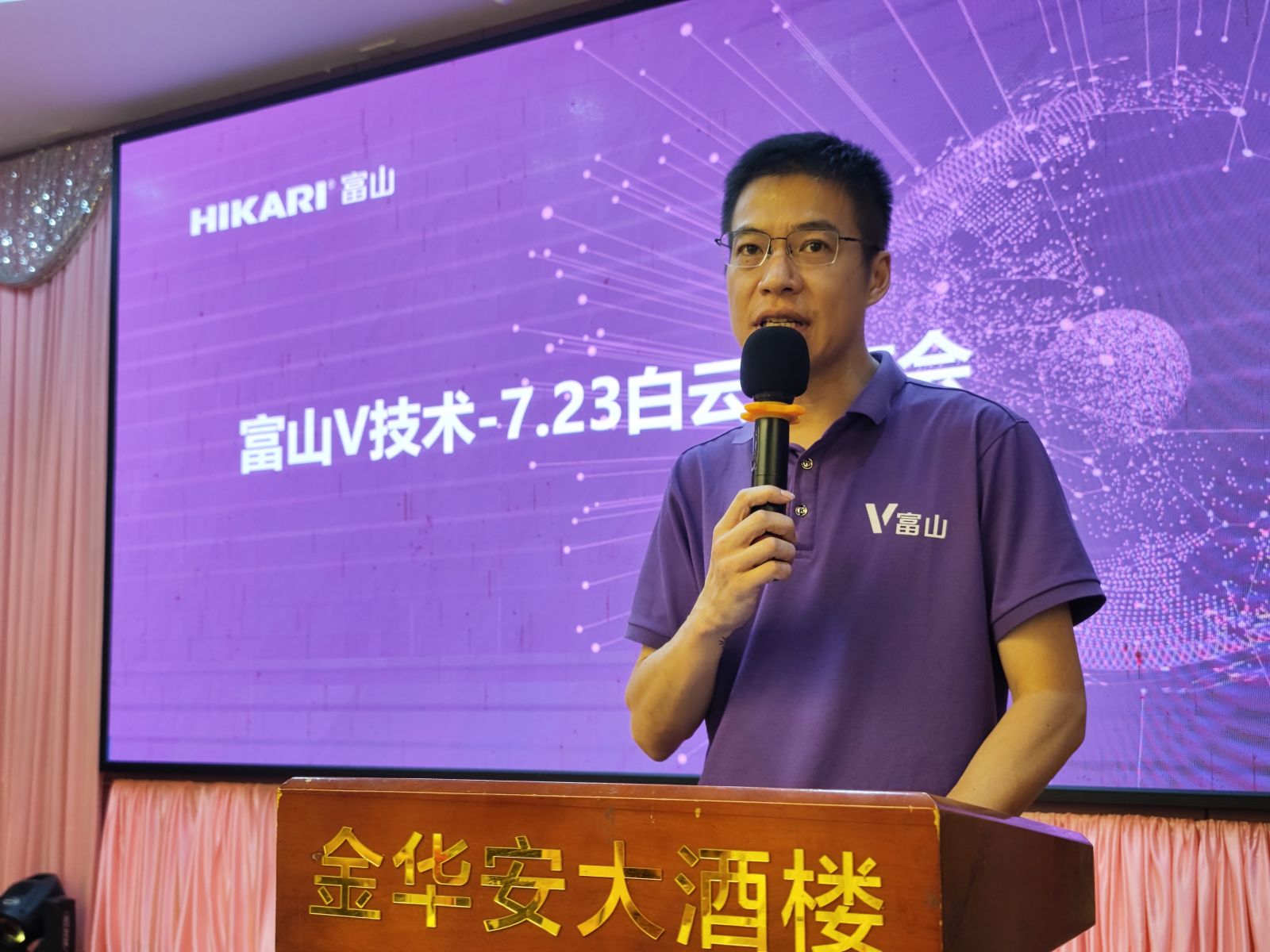 7月23日,富山V技術白云發布會在廣州盛大舉行。上海富山精密科技有限公司董事長吳良杰、銷售總監劉紅啟、大區經理顧駿、廣州豐帆公司總經理楊帆、廣州飛耀針車行姜總和胡總,以及周邊制衣企業負責人等共300多人出席了本次發布會。