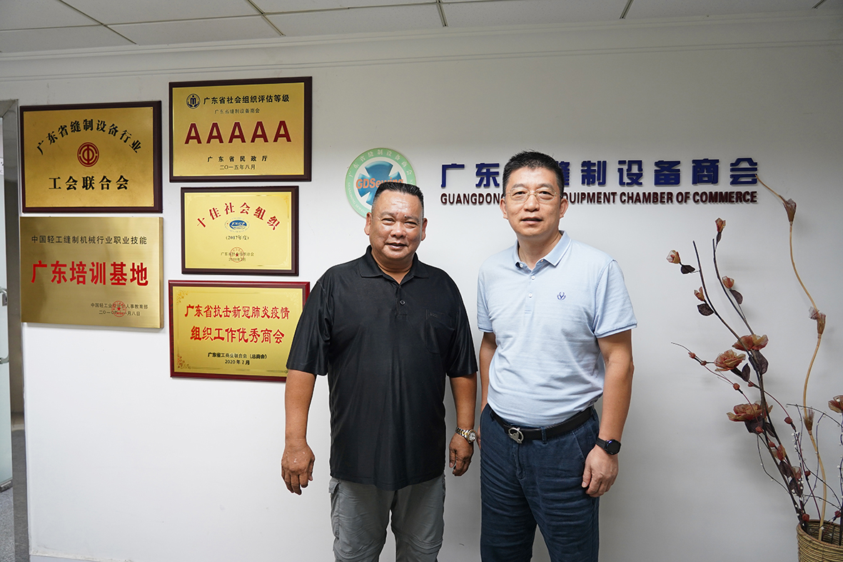 8月24日,仕必威貿易有限公司陳業鋮總經理到訪商會秘書處,商會常務副會長邵力世熱情接待了陳總。