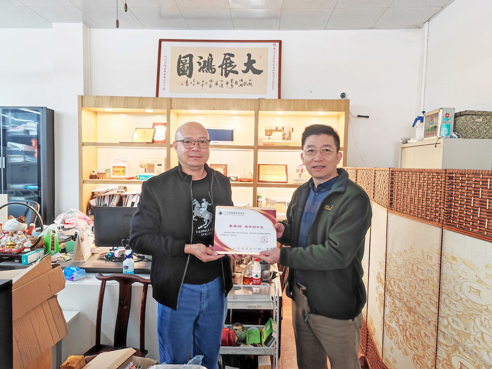 隨后,邵力世常務副會長向李宗潤總經理頒發了商會榮譽副會長牌匾,并感謝李總一直以來支持商會工作,關心行業發展。