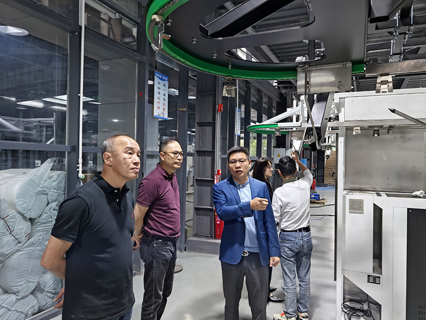 在湖南領創智能技術有限公司參觀考察期間,楊昌霖總經理介紹了企業在長沙設立生產基地,將產能從深圳轉移到長沙的情況。領創智能專注于服裝后道工序自動化設備的研發與制造,其核心產品“服裝自動折疊包裝機”填補了國內服裝后道工藝智能化設備的空白點。除了服裝折疊及包裝設備,領創智能還自主研發生產隧道式全自動熨燙機、電磁變頻鍋爐等服裝后道工序所需設備,為用戶提供后道工序整體解決方案。隨著服裝行業對降本增效需求的激增,傳統依賴人工的后道工序環節成為制約企業發展的瓶頸,越來越多服裝工廠開始了解并尋求相應的解決方案。領創智能通過十年技術積累,推出多款智能化設備,有效提升服裝后道工序效率并降低人力成本,目前,領創智能服務的客戶群體包括多家頭部服裝企業。