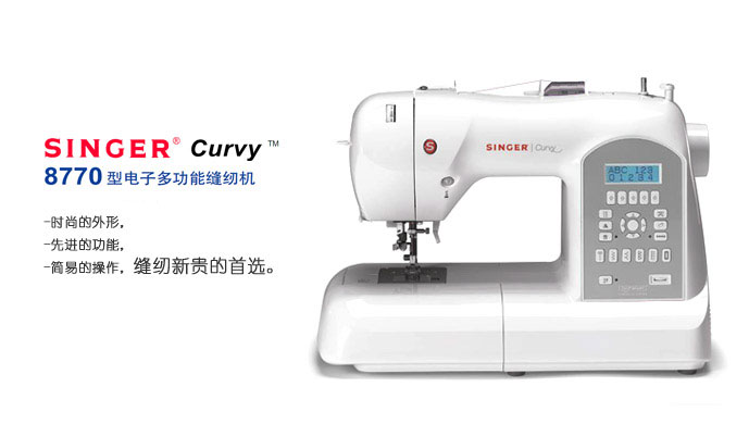 【產(chǎn)品型號(hào)】 SINGER curvy 8770 【額定電壓】 220V 【尺寸】 (W)×(D)×(H)(mm) |