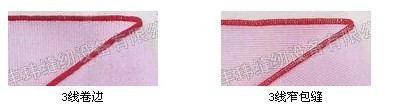 | 內置卷邊 | 右(窄)針或左(寬)針/2或3線 |