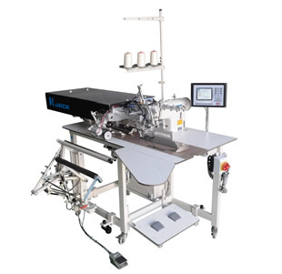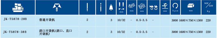 JK-T5878系列開袋機適用于加工雙嵌線、單嵌線直袋或斜袋,帶袋蓋口袋和不帶袋蓋口袋均能縫制。該機種應用靈活,適用范圍廣,特別適合加工西裝、西褲,休閑褲和運動裝口袋。彩色圖形顯示的控制面板,操作十分方便直觀。 該機器配置了一卷裝拉鏈自動輸送的選購裝置,拉鏈自動輸送并裁切。