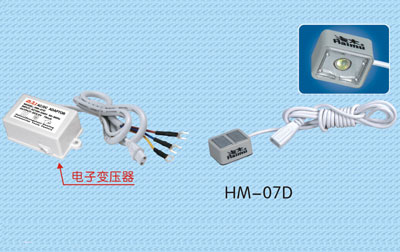 型號: HM-07D (電子變壓器) 1.LED: 1W 2.輸入電壓: 交流220V(380V), 50Hz 3.輸出電壓: 直流3.5V, 4.接線端: 電機開關 特點: 1.省電 2.不發熱 3.輕巧 4.壽命長 5.光線柔和 6.光線可分兩級調光 7.適用于任何縫紉機