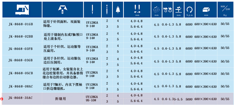 該機可進行兩面飾縫,因是小方頭式結構,適用于領口及袖口等較小部位的縫制,并配備切線裝置,可實現自動剪線和自動抬壓腳功能,可以輕松的進行下一次的縫制。