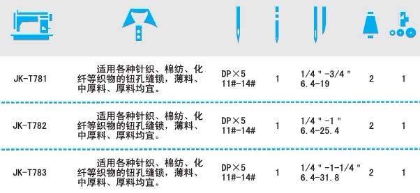 JK-T781平頭鎖眼機(jī)系列適用于各種針織、棉紡、化纖等織物的鈕孔縫鎖,薄料,中厚料均宜。
