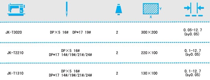 JK-T1310/2210/3020電子花樣機系列是集精密機械氣動與電腦技術于一體的專業縫紉設備。配備國內最先進的WINDOWS專業控制系統,可通過USB插口直接導入縫紉花樣。本著“簡單是硬道理“的設計理念,采用高清晰大觸屏、中文界面,真正實現全觸摸操作模式。該機廣泛運用于各類皮具、皮革制品、箱包、牛仔服裝、手提袋、體育用品、汽車安全帶等特殊部位縫制,縫制效果標準、美觀,極大地提高了工作效率和產品品質。