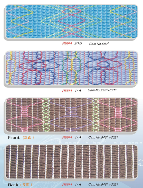 Using elastic thread as upper thread and no lower thread smocking machine, suitable for light knitwear and any light material.Because of elastic and varied cams,it can create many attractive and amazing seaming patterns.