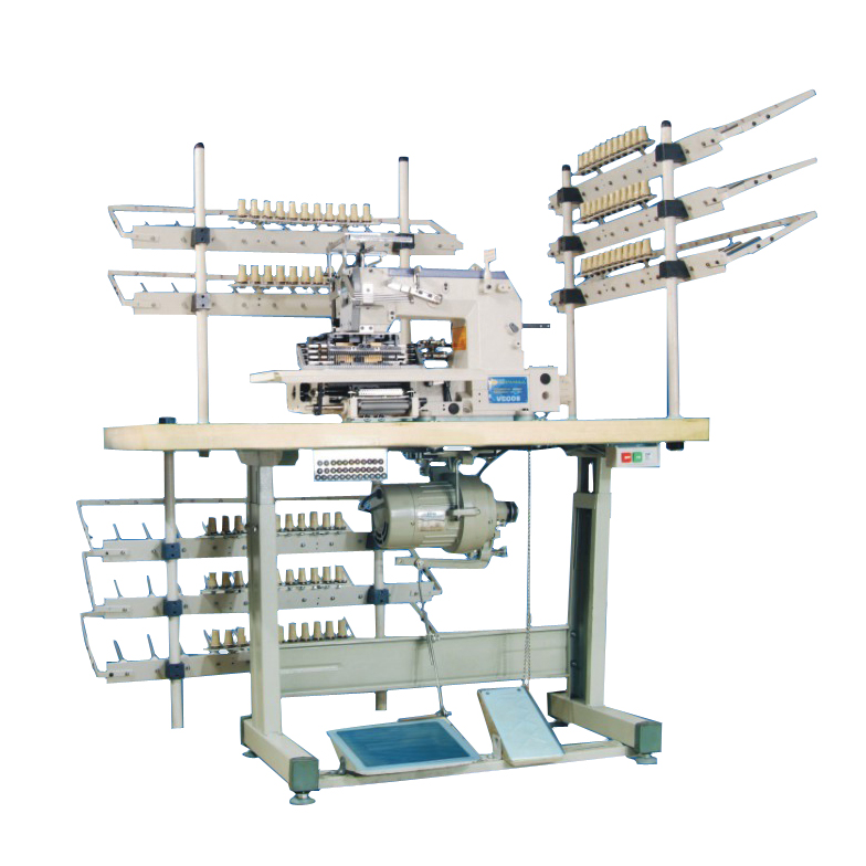 此機(jī)上線采用普通線,下線采用松緊線。運(yùn)用多款式樣的凸輪花盤(pán),再與裝飾互相搭配,創(chuàng)造出種類(lèi)繁多且吸引人的花樣圖案。適用于女裙打褶,連衣裙等腰邊松緊打褶,對(duì)于各種童裝、床上用品的裝飾縫,亦可選擇配置不同的花盤(pán),縫出想要的圖案。