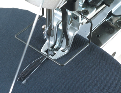 裝備了將圓頭鈕孔的左右橫列收攏的壓腳裝置。按壓住鎖眼孔后,拉布,進行套結,可結實并系線優良的完成圓頭鎖眼。