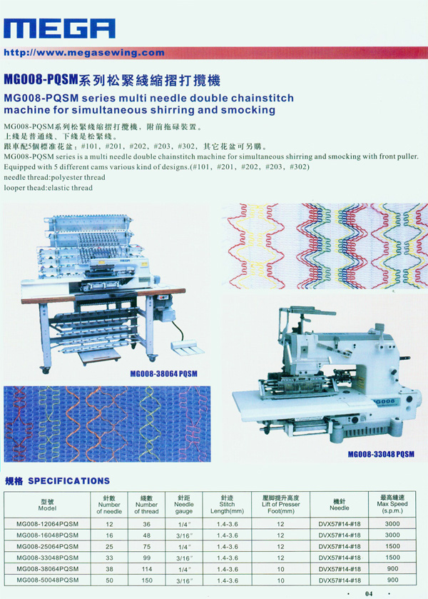 熱門產(chǎn)品: MG00-PTV系列打褶多針機   MG008-PSM系列打攬機   MG008-PQ系列松緊線縮摺機   MG008-38064PQSM系列松緊線縮摺打攬機   MG008-33048PQSM系列松緊線縮摺打攬機