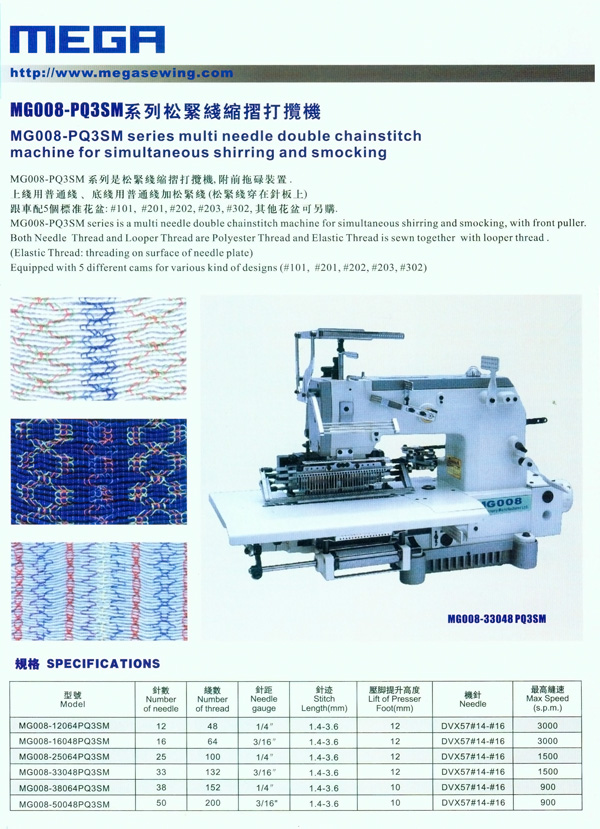 熱門產品: MG00-PTV系列打褶多針機   MG008-PSM系列打攬機   MG008-PQ系列松緊線縮摺機   MG008-38064PQSM系列松緊線縮摺打攬機   MG008-33048PQSM系列松緊線縮摺打攬機