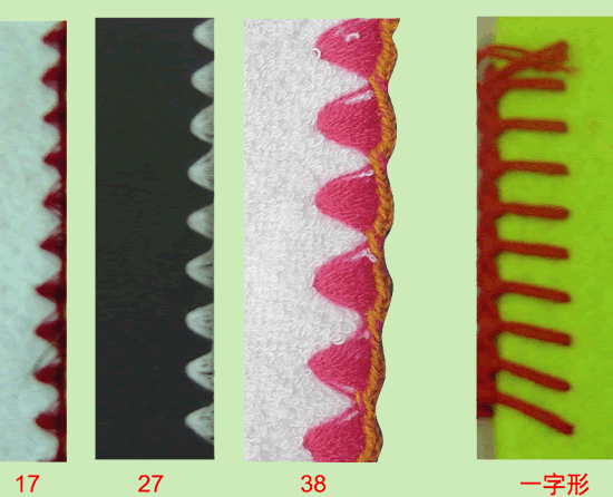 此款機器可依不同的線。布料與針距搭配出多種多樣的貝型花邊。