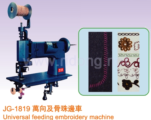 This machine has no embroidery frame and can embroider new style flower pattern. The ideal flower patterns, such as wrapping, chain, towel, hem, centipede embroidery, and etc. may be embroidered an all kinds of fabrics, such as woolen sweater, knit goods, corduroy, chemical fiber, pure silk, and etc. This machine uses universal feeding mechanics. The operation is very handy. The pattern can be changed in accordance with the idea of operator.