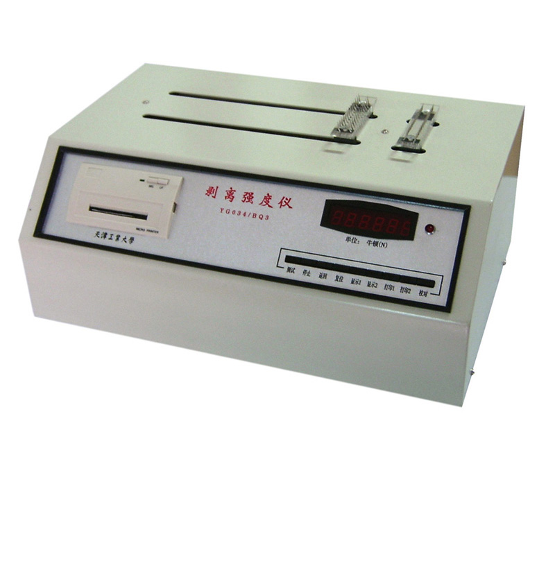 一、簡介 YG034/BQ3型剝離強度儀是最新研制的用來檢測粘合物粘合牢度的專用標(biāo)準(zhǔn)儀器。該儀器采用科學(xué)的測試原理,應(yīng)用先進(jìn)的測試技術(shù),測試方便、高效、準(zhǔn)確。經(jīng)中國紡織總會組織專家鑒定,確認(rèn)該儀器達(dá)到國際先進(jìn)水平,填補了國內(nèi)空白。因此,該測試儀是襯布生產(chǎn)廠、服裝廠、質(zhì)量檢測機構(gòu)及科研院校進(jìn)行質(zhì)量檢測、工藝控制和科學(xué)研究的理想儀器。 二、測試原理
