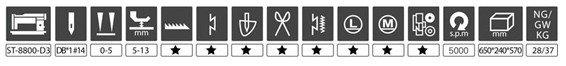 本機采用直接驅動系統,縮短了傳動路線,啟動平穩、反應敏捷提供了快速啟動和準確停機的功能,刺布效果優良。內藏式線結構,用戶可根據不同的工藝要求進行可選擇性的設定,大大提高了工作效率。送布牙的高度、傾斜度及相位均可容易調整,本機適用于中等厚料的棉、毛麻、化織等織物。