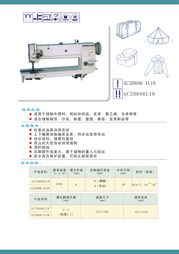 GC20606-1L18單針長臂綜合送料中厚料平縫機