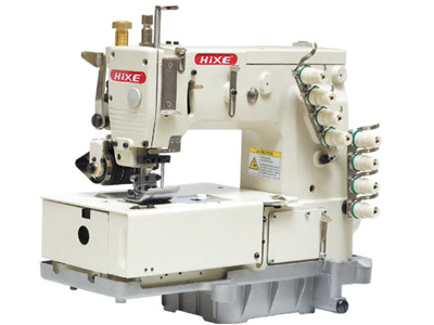HX-1508P采用彎針橫向擺動(dòng)裝置、適合厚物的縫制,使用前導(dǎo)輥、特殊的雙分段式壓腳,再加上滾邊壓腳的使用,使牛仔褲、低腰褲的縫紉變的簡單漂亮。