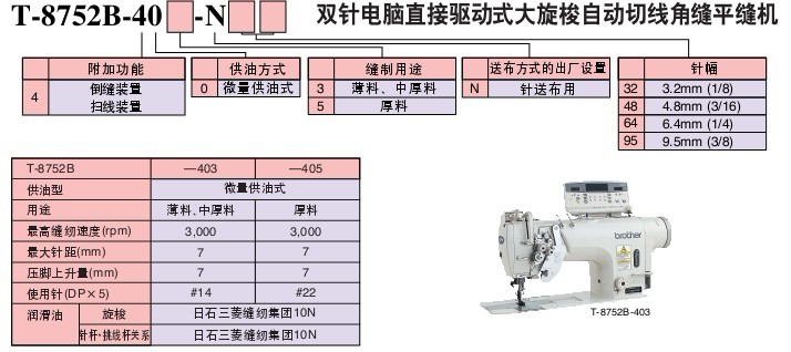 · 穩(wěn)定的自動切線功能和大旋梭提高了生產(chǎn)效率。 · 無油污清潔縫紉。 最小供油方式 用于薄·中厚面料/厚面料 最高縫紉速度:3,000 rpm 最大針距:7 mm 抬壓腳高度:7 mm 針送布/下送布為標準裝備 倒縫裝置為標準裝備