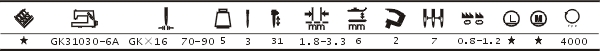 GK31030-6A型高速曲牙機采用新穎的曲牙針傳動機構和特殊壓腳。能使機器運轉更輕滑,曲牙花型更美觀。裝有卷邊器和過帶裝置。適用于婦女、兒童針織內衣的曲牙型滾領滾邊。
