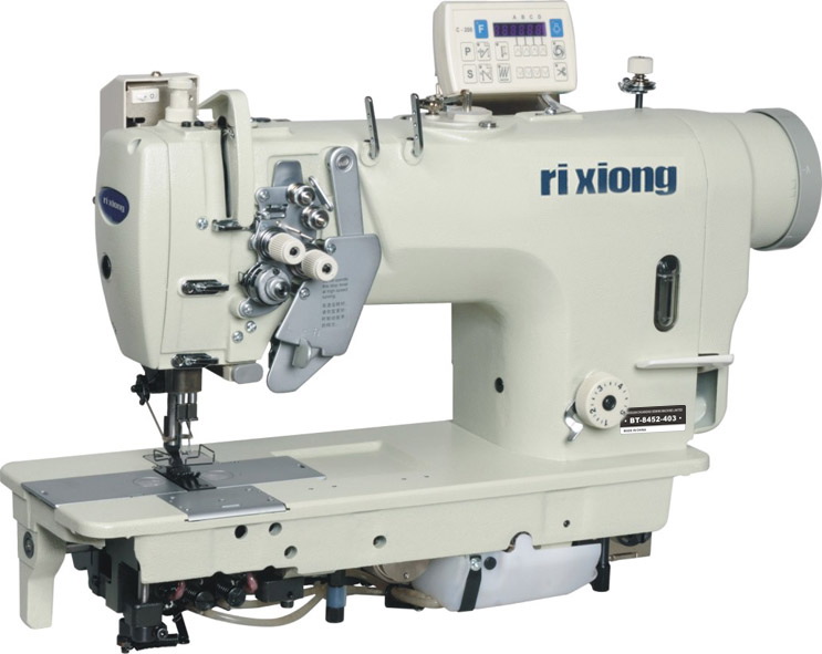 產品特點:角縫(單針停止裝置),只要操作拔桿就可以簡單的進行左右切換,在角縫省力化的同時,實現完美的針跡;钣么蛐蟮膬瀯荩七M厚料縫制的高品質化,提高效率。
