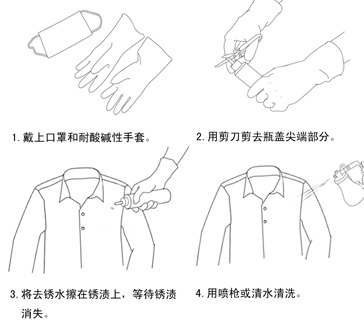 此類產(chǎn)品適用于毛衫、恤衫、西褲、布匹、絲綢等,不損衣物,能快速清除衣物上的頑固銹漬和各種布料上的水跡及衣物上的頑固污漬。