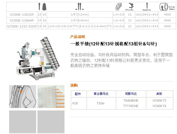 VC008-13032P,VC008-13064P,VC008-1332-032P 一般平縫(12針配13針規格配13組針&勾針)