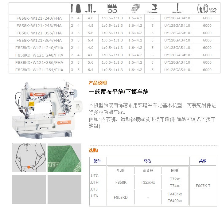 F858K-W121,F858KD-W121 一般薄布平縫/下擺車縫