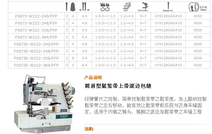 F007J-W222,F007JD-W222 簡易型鬆緊帶上帶滾邊包縫