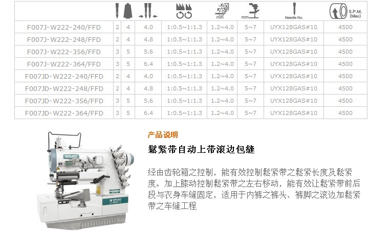 F007J-W222,F007JD-W222 鬆緊帶自動上帶滾邊包縫