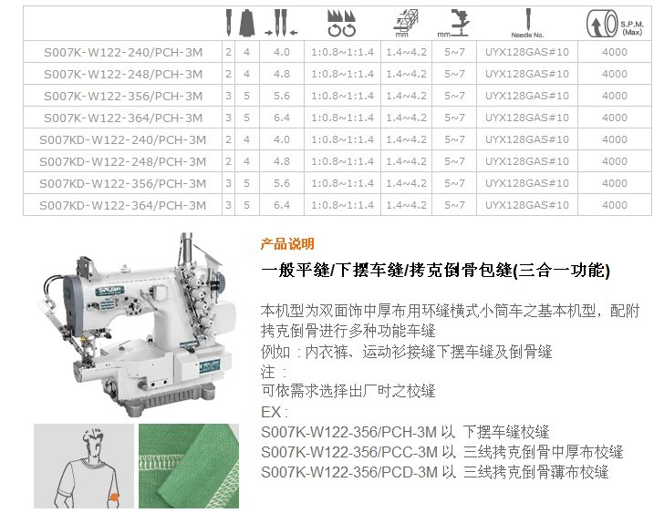 S007K-W122,S007KD-W122 一般平縫/下擺車縫/拷克倒骨包縫(三合一功能)