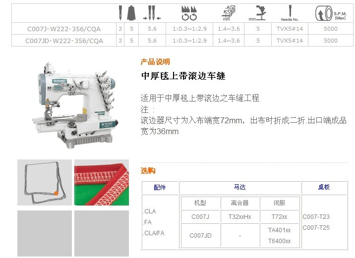 C007J-W222-356/CQA,C007JD-W222-356/CQA 中厚毯上帶滾邊車縫