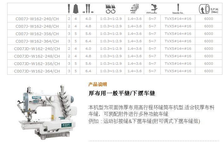 C007J-W162,C007JD-W162 厚布用一般平縫/下擺車縫