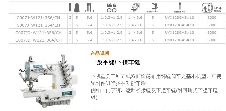 C007J-W121,C007JD-W121 一般平縫/下擺車縫