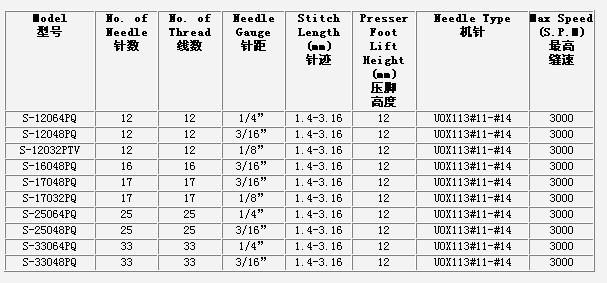 特點:選擇不同的喇叭均能組合各種左右打褶。自動給油,勾針從向卷褶,可縫出完美款式。明褶縫2mm,5mm,8mm寬左和右多針縫褶縫,PTV表示明褶縫,PTV-1表示暗褶縫。