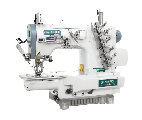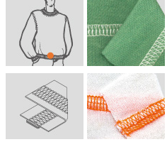 配備一般平縫之針板與送料具.適宜中厚布料,經四線拷克車縫后再包縫,用于運動服、汗衫等領口,下擺或袖管等之拷邊車縫后加以包縫,可增加服飾之美觀及車縫之牢固,利用導布片及押具上之押刀導縫,可避免車縫時彎曲不直。另附一組可調式下擺車縫組, 可兼用于下擺車縫